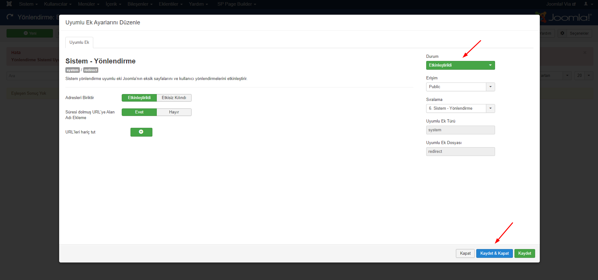 Sadece 2 şey yapmanız, durumu "Etkinleştirildi" olarak değiştirmeniz ve "Kaydet ve Kapat" tuşuna basmanız yeterlidir.