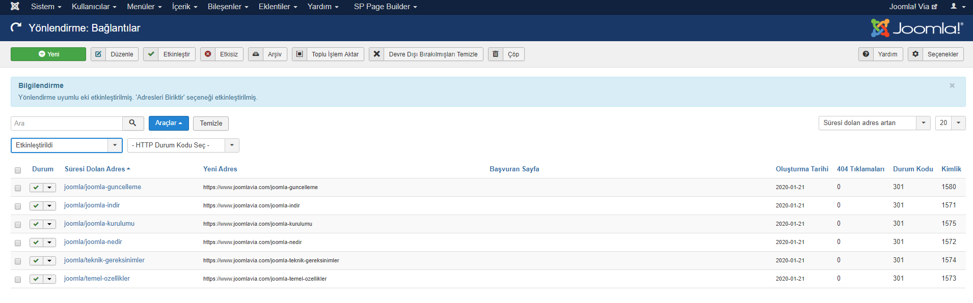 Diyelim ki bir süre web sitenizi çalıştırdıktan sonra, Joomla! sitenizi SEO dostu hale getirdiniz. Veya yalnızca tüm URL'lerden kimlik numaralarını kaldırdınız. Artık web sitenizde trafik üreten bir ton URL var. Ama bağlantıların süresi dolduğundan, hepsini kaybediyorsun o zaman ne yapacaksınız? Bu durum da URL Yönlendirme işlemini yapmanız gerekiyor.