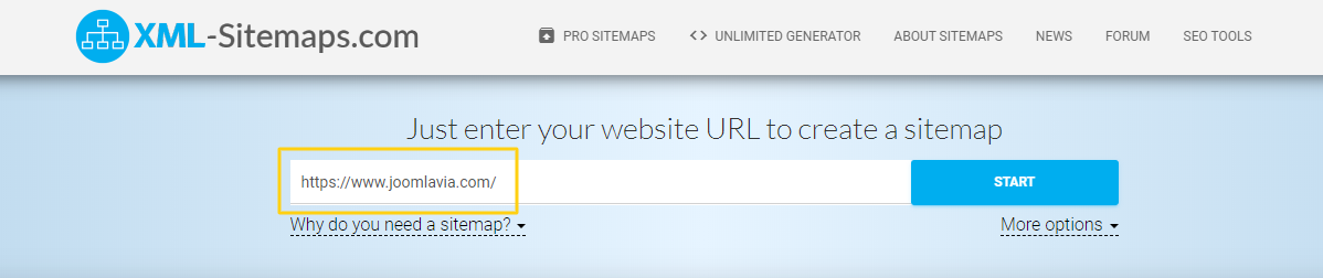 Peki, bir site haritası nasıl oluşturabiliriz? Joomla! web siteniz için bir XML site haritası oluşturmak için çok sayıda araç vardır. Dilerseniz Joomla! eklentileri de kullanarak oluşturmanız mümkün, fakat bu eğitim dersinde online bir site haritası oluşturma aracını kullanacağız. Bunun için favorilerimizden bir tanesi olan xml-sitemaps.com üzerinden işlemi gerçekleştireceğiz.