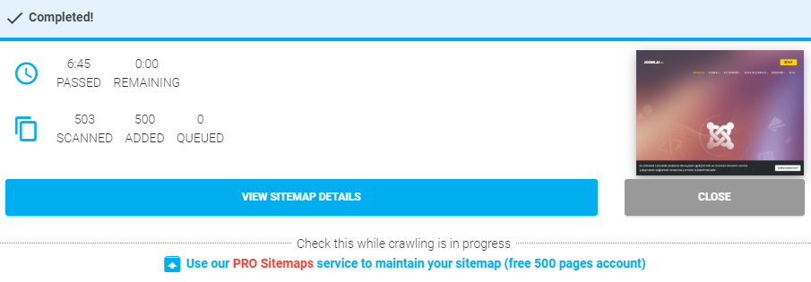 Tüm URL'lerinizi listelemeniz ve Joomla! web siteniz için site haritası oluşturmanız biraz zaman alacaktır.