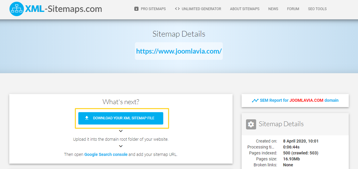 Web siteniz için Joomla! XML site haritasını almak üzere indir düğmesini tıklayın. Artık Joomla! web siteniz için bir XML site haritasına sahipsiniz. Bir sonraki yazımızda site haritasını yüklemeniz gereken alanı ve site haritanızı Google'a gönderme işlemini öğreneceksiniz.