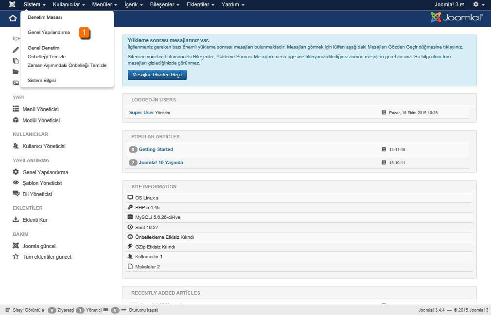ADIM 1: Özelliği aktif etmek için yönetim merkezinde bulunan "Sistem" üst menüsünden "Genel Yapılandırma" kısmına giriş yapıyoruz.