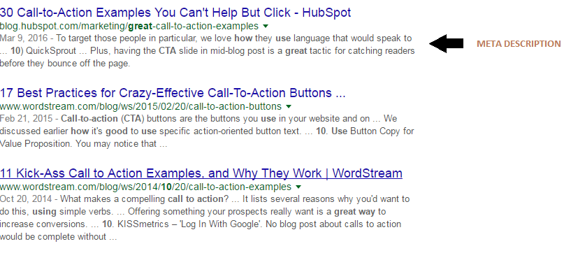 Daha önce de belirtildiği gibi, meta açıklamaları harekete geçirme ifadesine benziyor, bu yüzden onları çekici kılmalısınız. Odak anahtar kelimeleri kullanarak reklam metni gibi yazın. Bu, söz konusu web sayfasının tıklama oranını iyileştirmeye yardımcı olacaktır. Google, anahtar kelimeler içeren bir meta açıklama göstermeye meyillidir ve arama sorgularıyla eşleştiklerinde koyu renkli olacaktır.